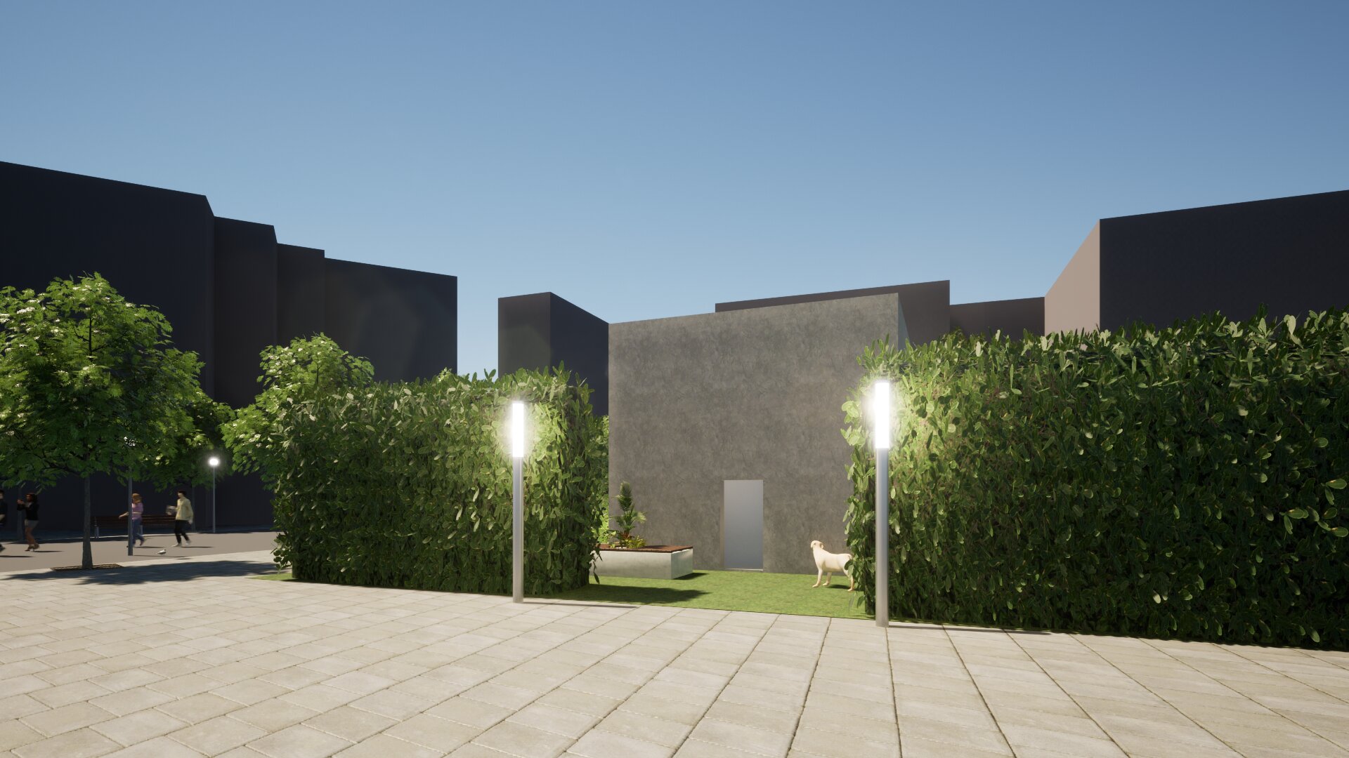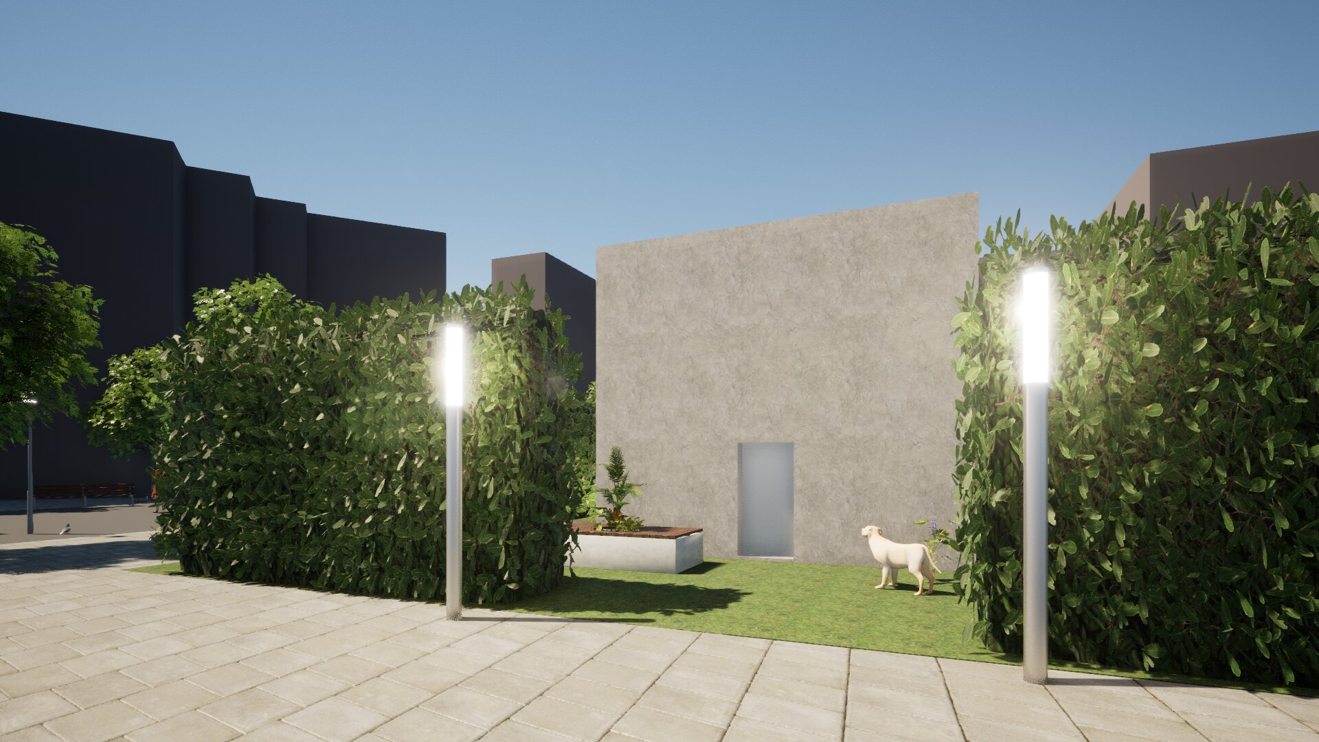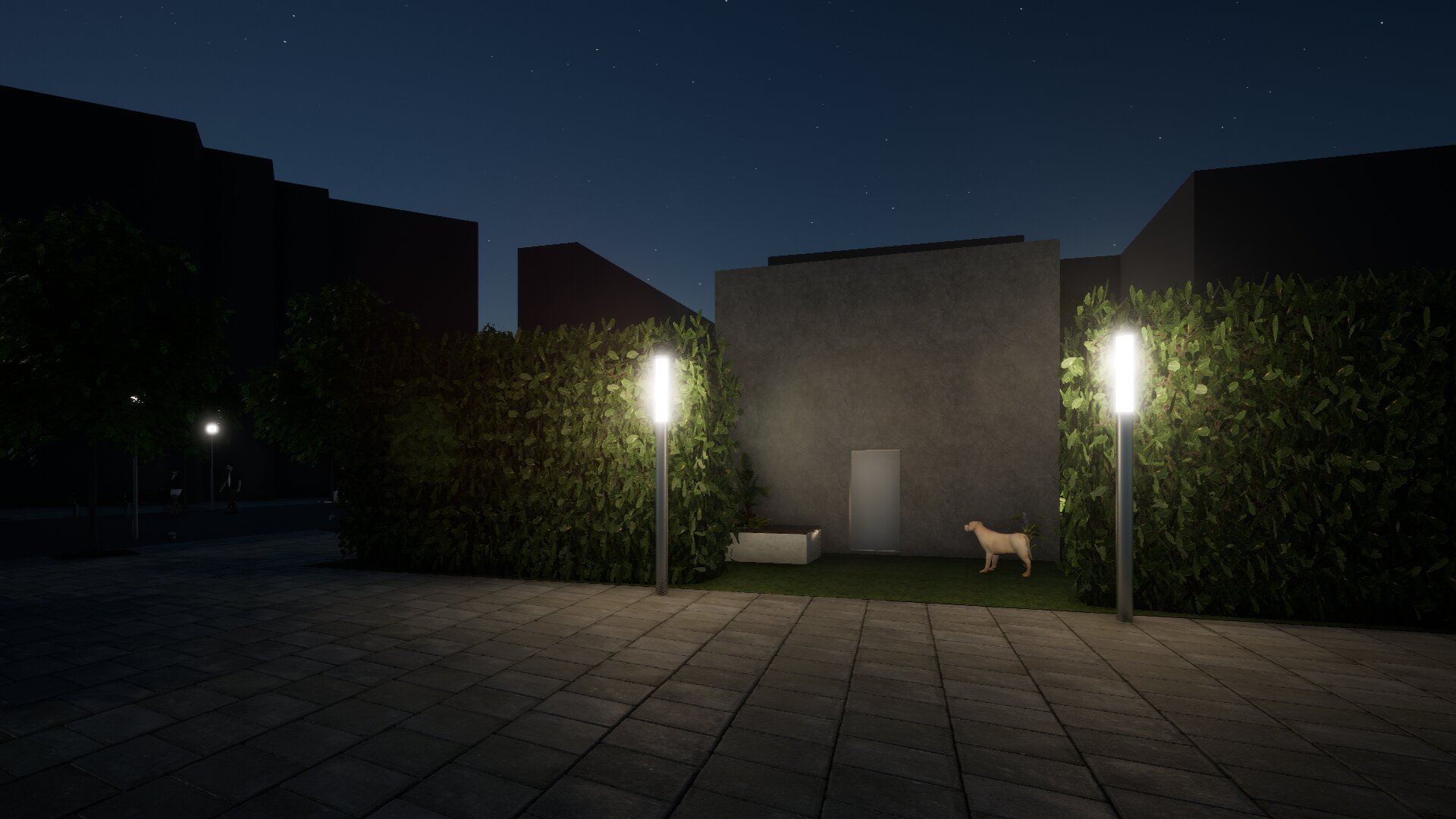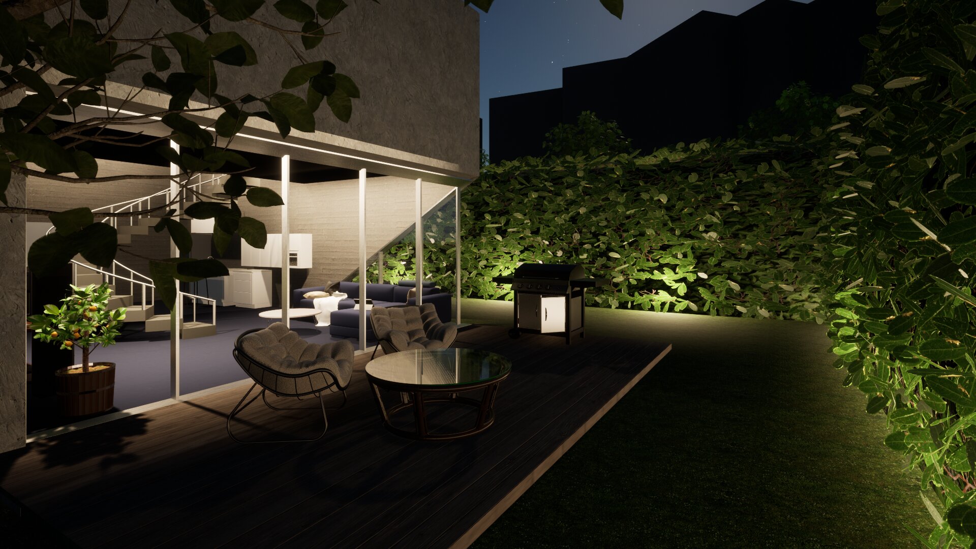 외부 덤불 속에 조명을 숨겨 은은한 간접조명의 효과를 냄